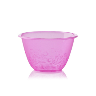 Half doorzichtige plastic bekers met een inhoud van 280cc, voorzien van een barok motiefje.