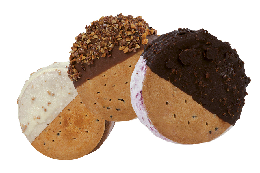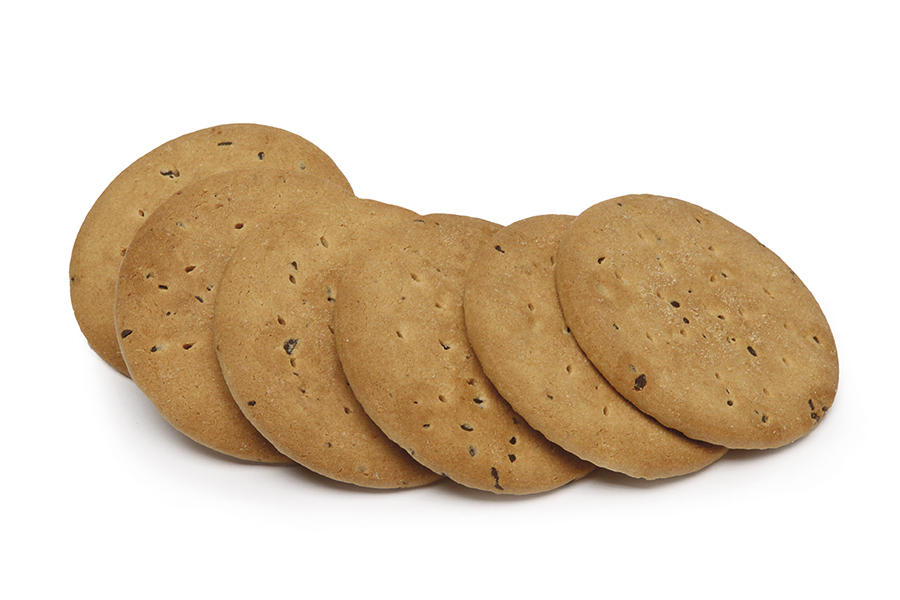 Ronde ijskoekjes met kleine stukjes chocolade er in en een zeer knapperige structuur. De koekjes hebben een diameter van 77mm.