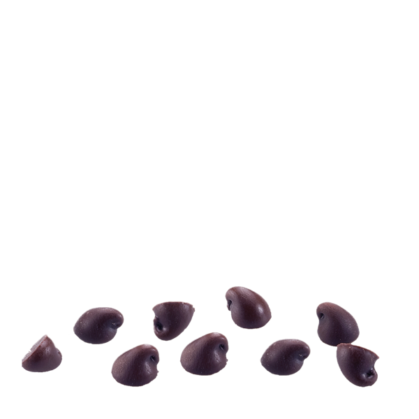 Dark chocolate with good organoleptic characteristics, recipe resistant to cooking at high temperatures, studied for bakery products. Drops of about 0.11 g each.