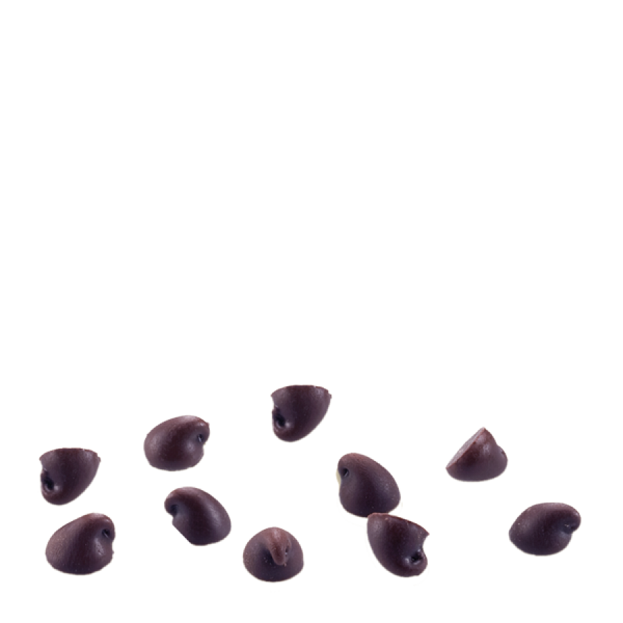 Dark chocolate chips with nice organoleptic characteristics, designed to resist high temperatures when baking, created for oven-based products.