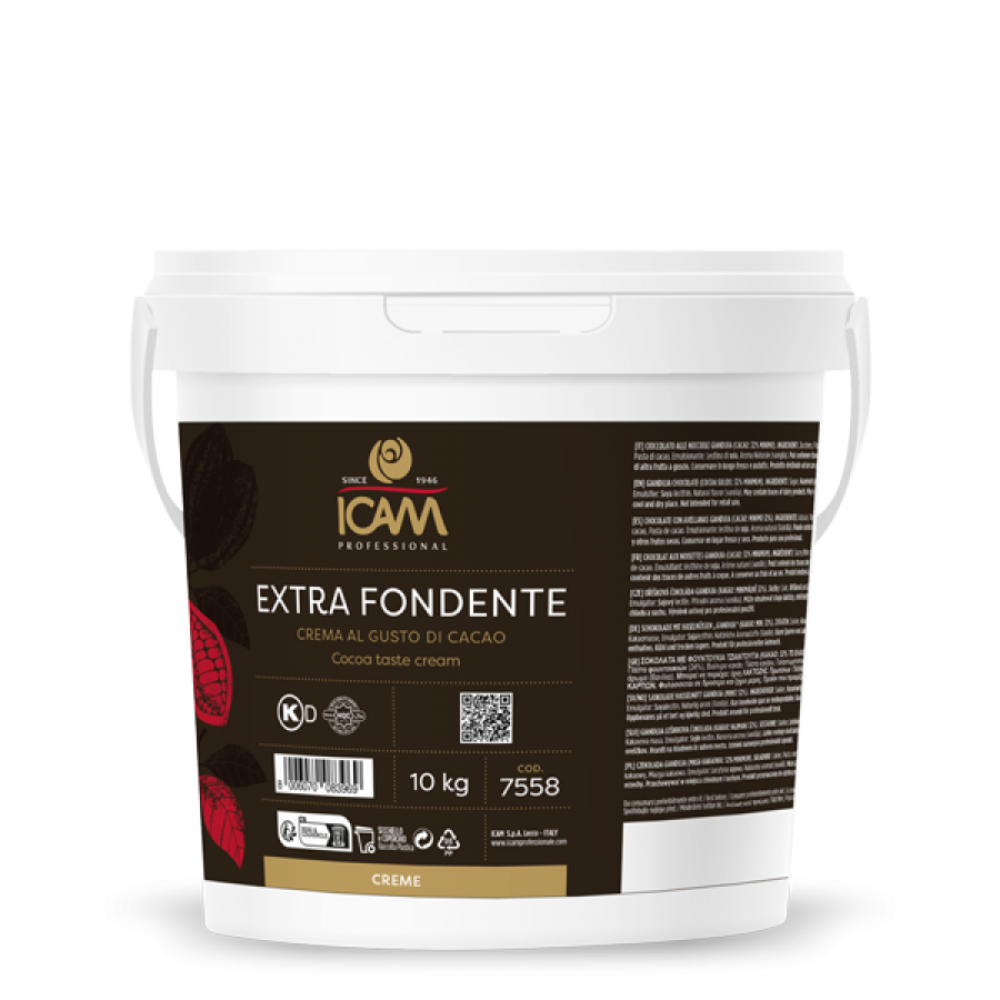 Spreadable cream with a compact and smooth consistency. Very deep dark chocolate colour, with an intense and pronounced taste of cocoa that comes from its high low fat cocoa content (28%) and the absence of hazelnut paste. Hydrogenated fat free. Ready to use as is, and guarantees optimal results in production performance.