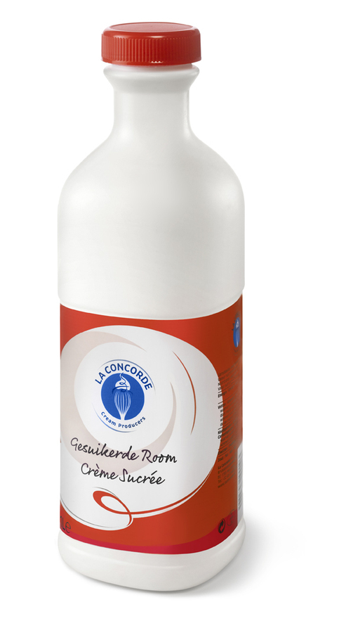 De gesuikerde room hebben we in 12x 1 liter verpakkingen met een vetpercentage van 35% en in bib verpakkingen van 5 en 10 liter met een vetpercentage van 40%.