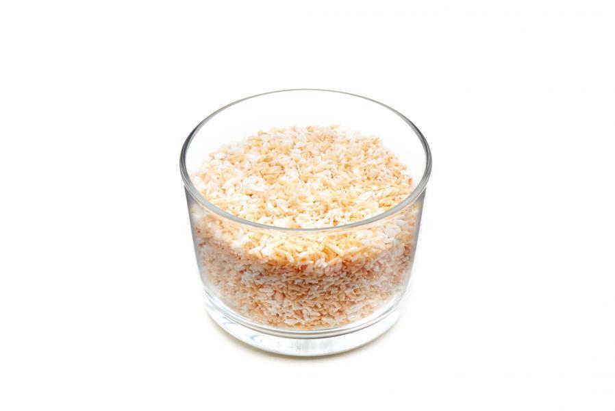 Mix van gecarameliseerde kruimels en grotere snippers gegratineerde kokos.