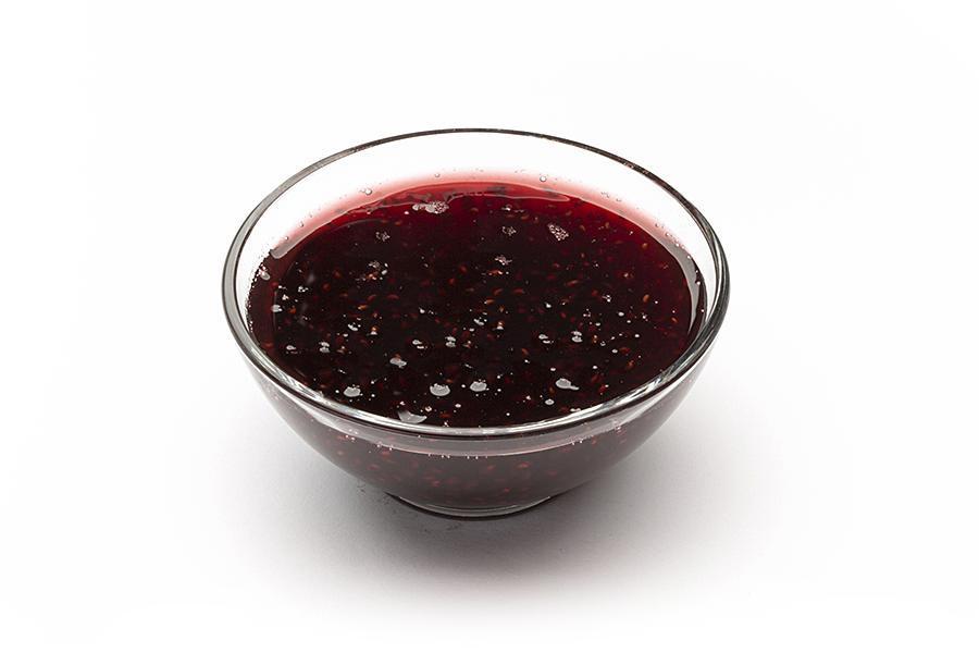 Deze pasta valt op door de grote hoeveelheid frambozen. Dit product bevat alleen natuurlijke smaakstoffen en behoort tot de All Natural range.