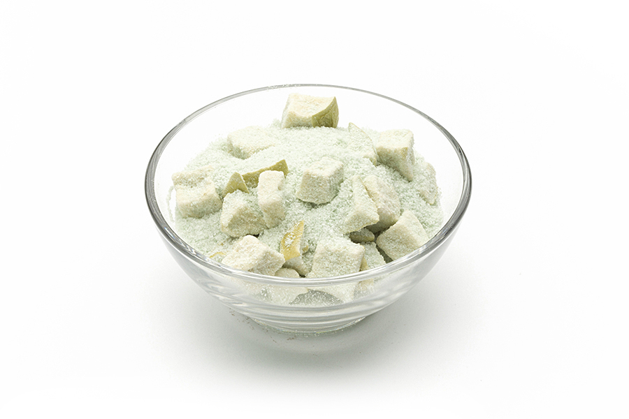 Deze sprint bevat veel kleine stukjes gevriesdroogde appel met schil en zorgt voor een natuurlijke en intense zurige smaak, zoals een groene appel smaakt.