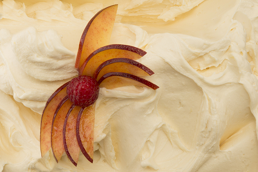 Smaak: De scherpe smaak van witte perzik, gecombineerd met de zoetere smaak van gele perzik.