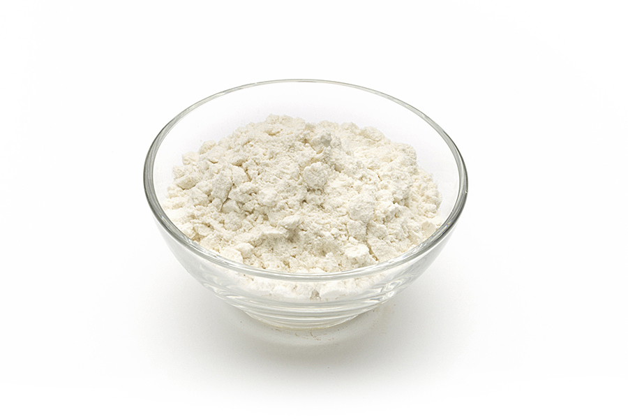 Een poederproduct met een grote hoeveelheid gedehydrateerde ricotta kaas (eerste ingrediënt), welke moet worden toegevoegd aan een melkbasis.