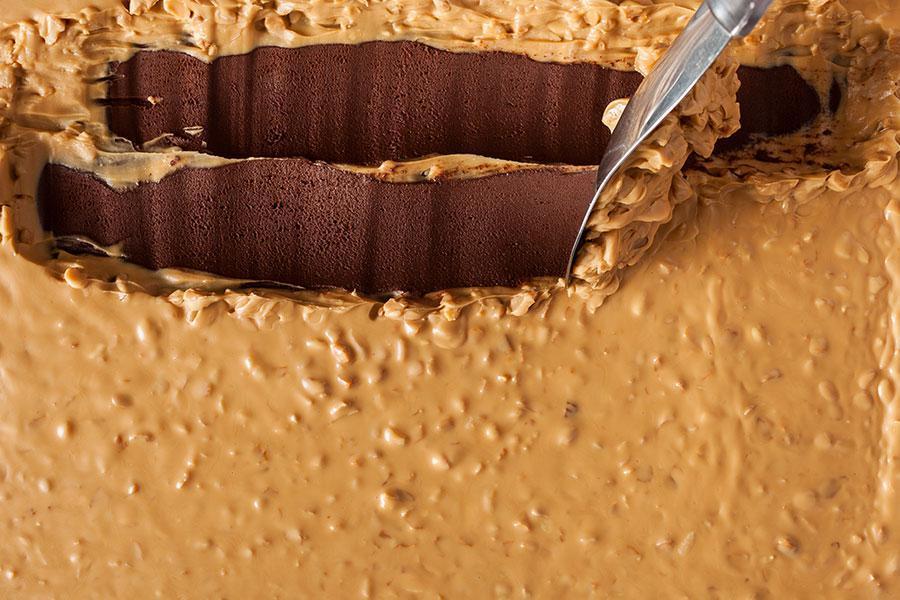 Deze cremino bevat een grote hoeveelheid vermalen geroosterde amandel en stukjes amandel.