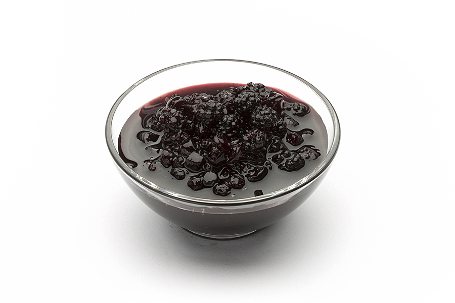 Rode bosbessen, blauwe bessen en frambozen in een dikke siroop. Dit product moet in zijn pure vorm worden gebruikt, onverdund. Voor sommige toepassingen kan het handig zijn om een beetje siroop uit het product te halen.