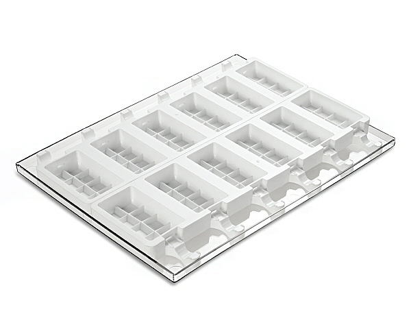 Twee silicone mallen voor ieder 6 stuks ijs op stok met unieke wafel-blokjesvorm.