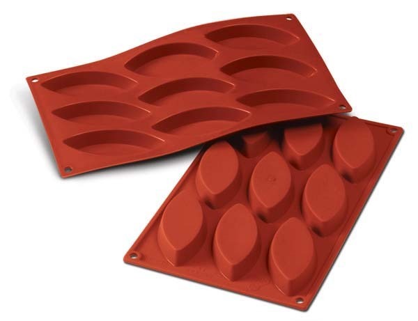 Een siliconen matje met daarin 9 bootvormpjes van 100x44mm, een diepte van 15mm en een inhoud van 40ml.