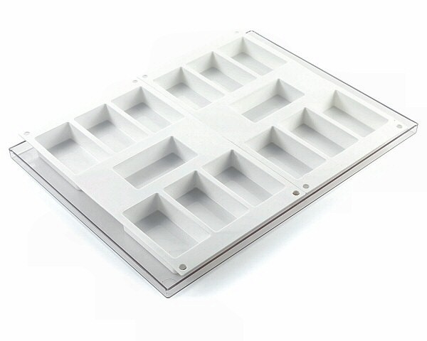 Set van 2 silicone mallen met daarin 7 rechthoekige vormen van 87 x 48 x 24 mm.