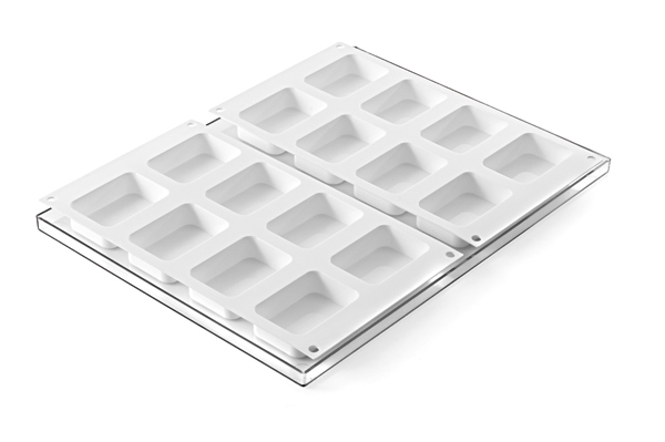 Set van 2 silicone mallen met daarin elk 8 vormen van 70,5 x 48,5 x 20,5 mm.