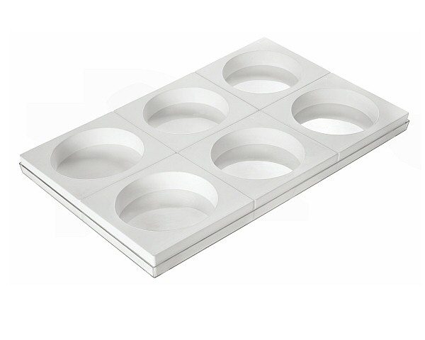 Set van 6 silicone mallen met een doorsnede van 160mm en een hoogte van 40mm.